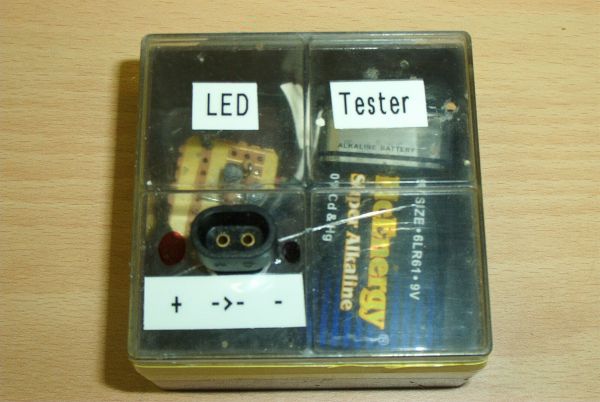 Hab jetzt wie oben im Thread schon vorhergesagt so einen LED-Tester gebastelt, für normale LEDs und SUperflux LEDs hier ein paar Bilder dazu: