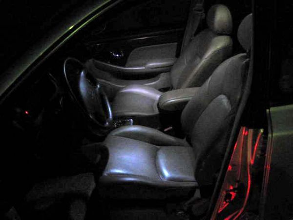 Geschaltet hab ich das so, daß der Beifahrer nur seinen Lesespot schaltet, so daß wenig Licht drumherum ist, und ich im Dunkeln ungestört weiter fahren kann. Und bei der Fahrerseite leuchten die 6 Novas mit, da ich selber das Licht ja nicht beim Fahren benutze.