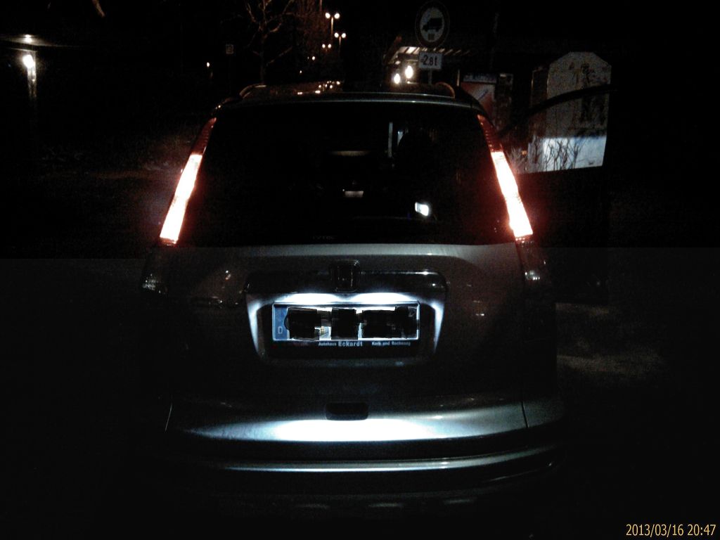 zwecks nächtlichem rückwärtsfahren auf dem Feldweg zu meinem Wochenendgrundstück hab ich mir mal die Kennzeichenbeleuchtung auf LED-Technik umgestellt,um die Rückfahrkamera besser auszuleuchten.