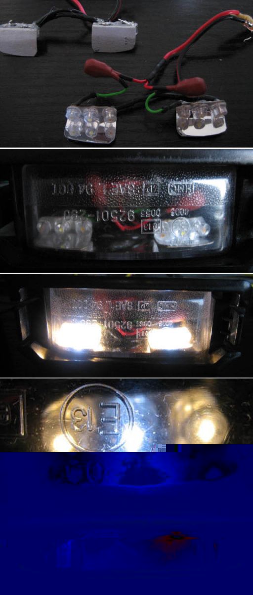 Plane schon seit längerem, auch die Kennezeichenbeleuchtung mit LEDs umzurüsten. Jaja, ich weiß. Ist verboten. Ich bin aber bockig, und mach´s trotzdem. :twisted: Unabhängig davon mach ich es den Cops hier sogar leichter, mein Schild zu lesen. :shock: