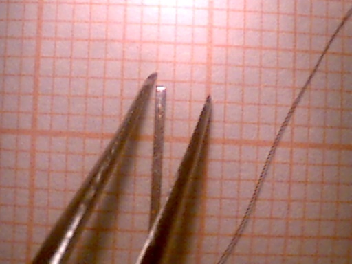 nach der instandsetzung, mit grössenvergleich ein quadratischer draht und ein haar.