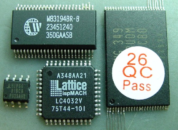 Unten Mitte IC mit RM 0,80mm, das geht auch noch so einigermaßen, Lupe ist erforderlich.
