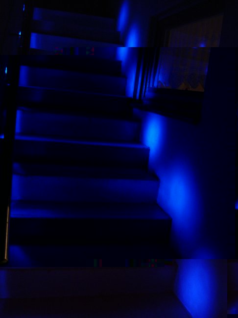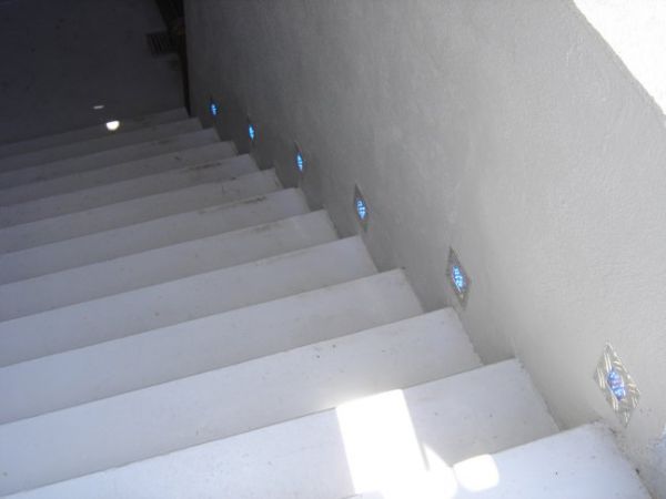 Treppe mit eingelassenen Strahlern: Strahler an sich: (natürlich alles selbst gemacht) Treppenbeleuchtung bei Tag: Verdrahtung der Anlage: (mit Zeitschaltuhr) Treppe bei Nacht: Technische Daten: