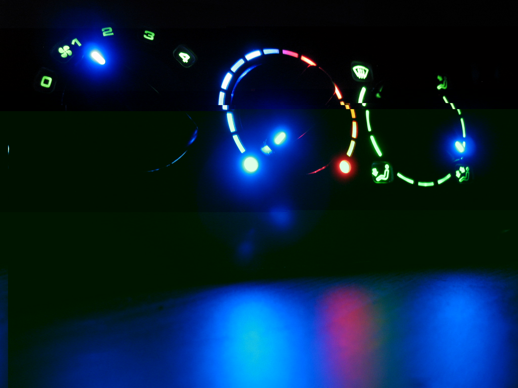 Material: 45 blaue Leds ( 3,5V - 30mA - 6000mcd ) 20 rote Leds ( 2,2V - 30mA - 6000mcd ) 9 weiße Leds ( 3,4V - 30mA - 8000mcd )