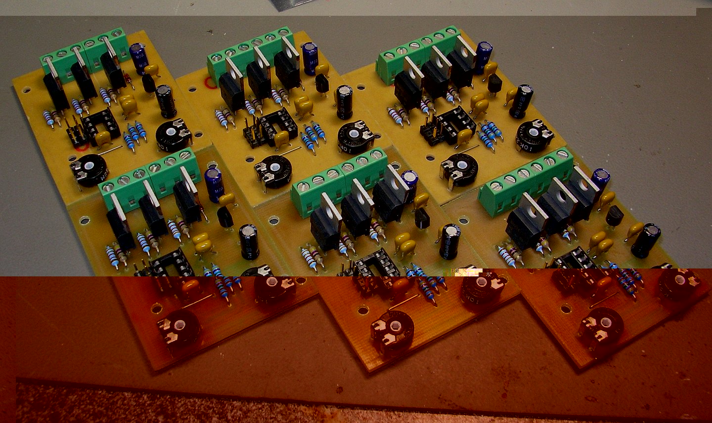 Nach einer kleinen Lötorgie waren dann 6 Fader aufgebaut. Bevor man nun die Tiny13 bestückt sollte man nun zuerst ein Labornetzteil an die Baugruppen anschließen und Messen ob auch Ordnungsgemäs 5Volt anliegen. Wenn dies der Fall ist dann können die Tiny13 in die Fassung gesetzt werden und anschließend programmiert werden.