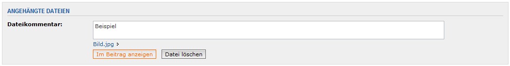des Beitrages in einem Feld "Dateianhänge" angezeigt und das oft nicht in voller Größe.